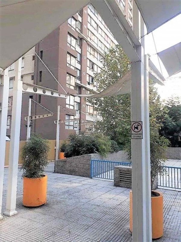 Se arrienda en muy buen estado y recién pintado departamento ubicado en el Edificio Novo Portugal 564, piso 19, Comuna de Santiago Centro, este Edificio cuenta con piscina, quincho, sala multiuso, gimnasio, lavandería, 24 estacionamientos visitas, conserjería 24 horas. Es del año 2011 y se encuentra cercano a la estación de metro L5 - Santa Isabel, y metro L3/L5 - Irarrázaval. Emplazado en calle Portugal con Argomedo, próximo a avenidas Santa Isabel, Vicuña Mackenna, Parque Bustamante, Cercano a Universidades, bancos, supermercados. en primer nivel, wifi en espacio común, 2 empresas de cable e internet; paneles solares para las calderas; tiene 20 estacionamientos destinados a visitas, Bicicleteros -1 y -2.