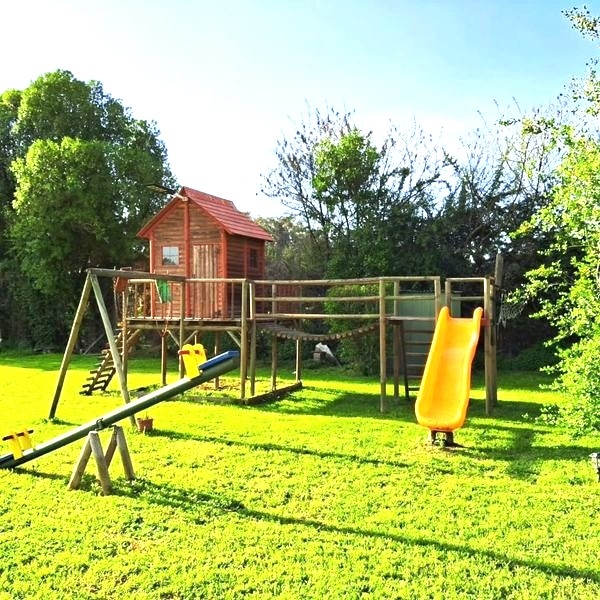 Zona de Recreo: Área de juegos con casita, columpios, resbalín, balancín y cama saltarina para los más pequeños