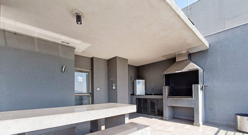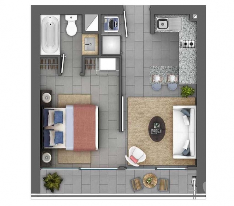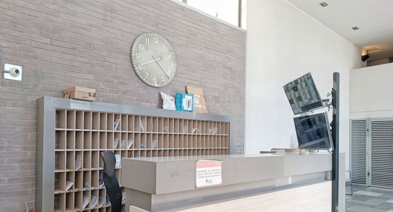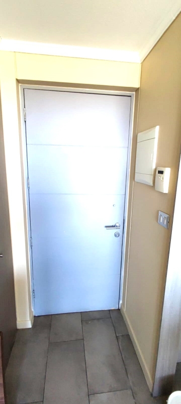 1 amplio dormitorio con dos closet incorporados en un ambiente independiente, separado por puerta corredora con piso en porcelanato gris y ventanales de aluminio, con muy buena insonorización y con cajas disponibles para posterior instalación de servicios de cable, internet y telefonía fija.