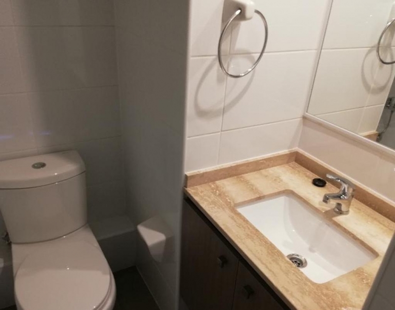 1 baño en suite, con lavamanos en mármol, grifería monomando con ahorro de consumo de agua y WC con descarga diferenciada para ahorro de agua.